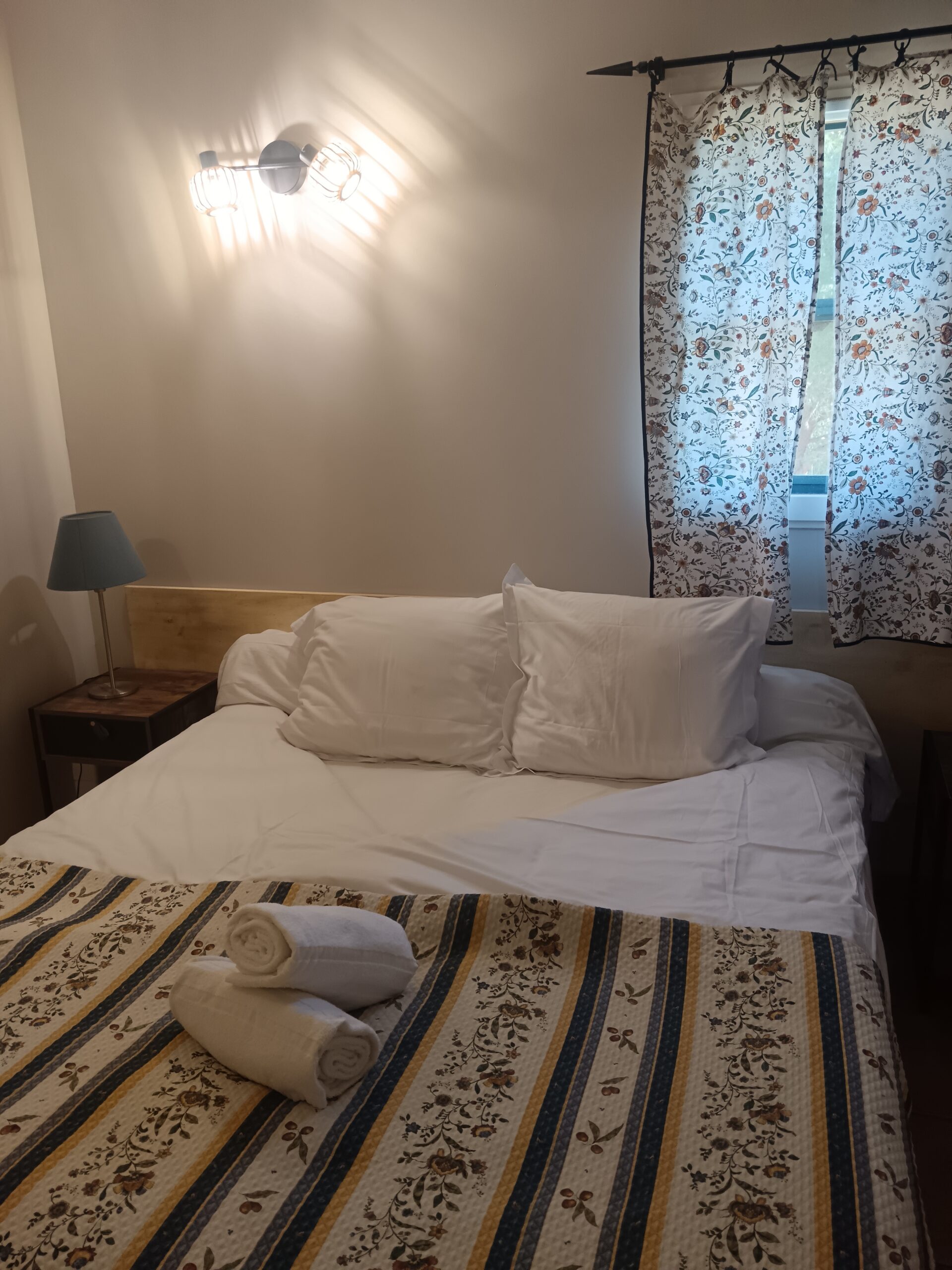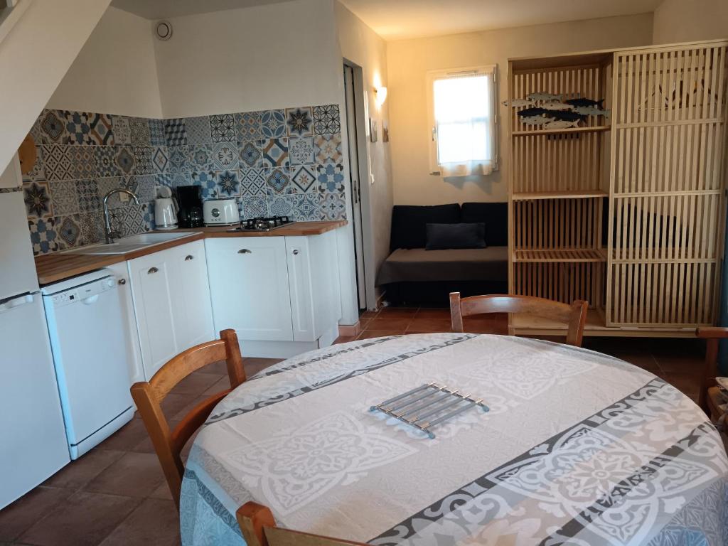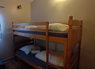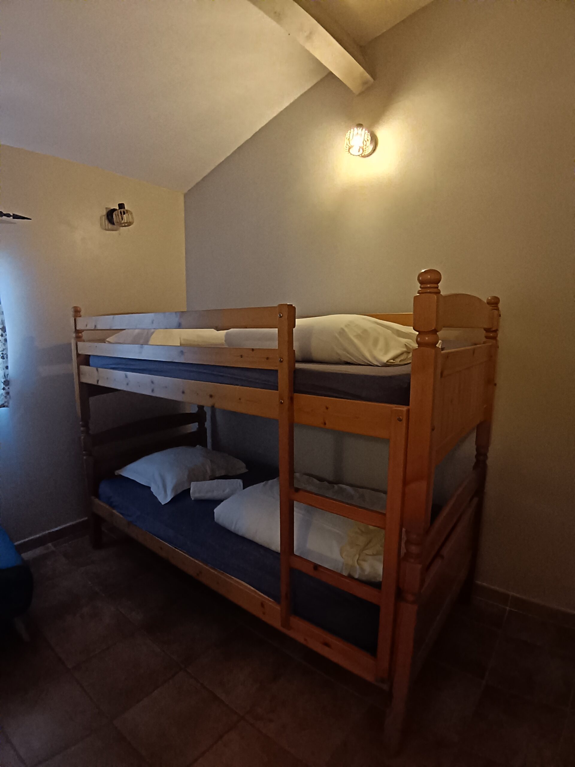 Cuisine bien équipée avec lave-vaisselle friteuse à air, 2 chambres à l’étage, 1 avec 2 lits simples ou un lit double, et la 2 ème chambre 1 lit superposé.