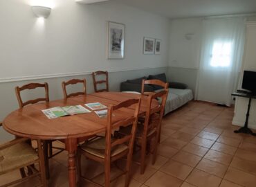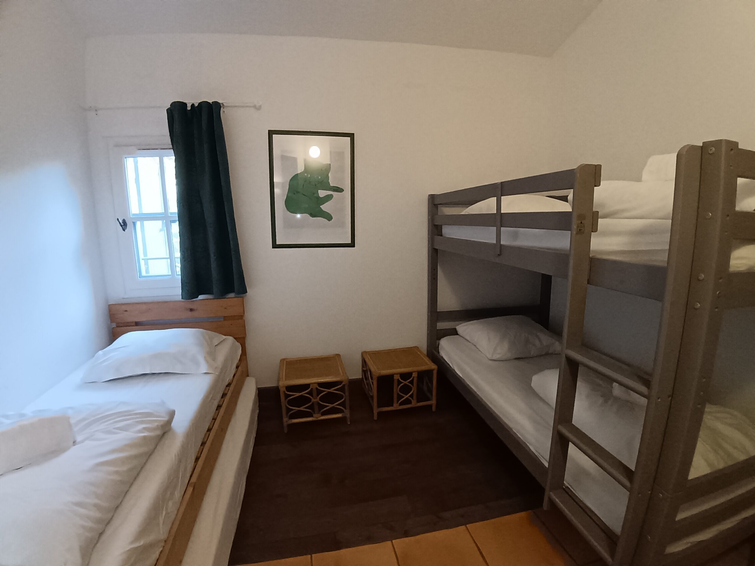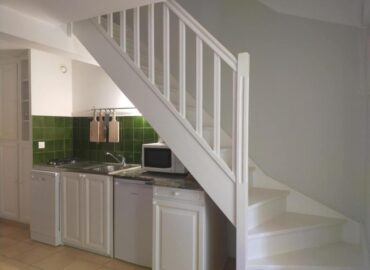 Cuisine bien équipée avec lave-vaisselle, 2 chambres à l’étage, un lit double ou 2 lits simples, et la 2 ème chambre 1 lit superposé, 1 lit simple, et 1lit d’appoint