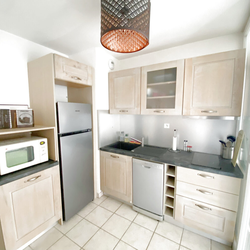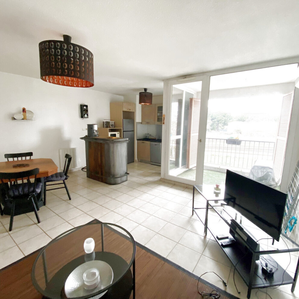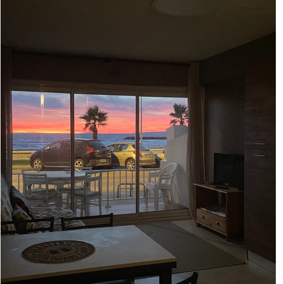 Emplacement exceptionnel Le Grau du Roi, Front de mer, Appartement 1 chambre double, véritable canapé lit dans la pièce principale, Salle de bain avec douche et toilettes Cuisine US Balcon, 1 place de parking attitrée gratuite